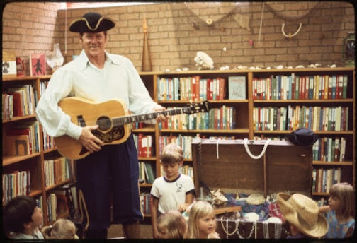 Here is a photographic slide of Gilbert Lail Winchester as his alter ego "Captain Windy" entertaining children at the Gaston-Lincoln Regional Library.
